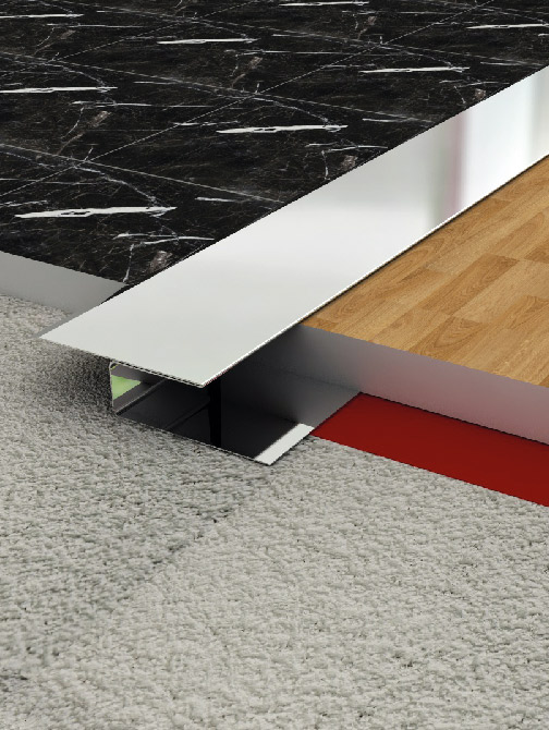 Paslanmaz çelik parke T profili, kimyasal parlak, sarı, bronz ve siyah renk seçenekleriyle zemin geçişlerinde estetik ve dayanıklı bir bitiş sağlar. Hem iç hem dış mekanlar için uygundur.
